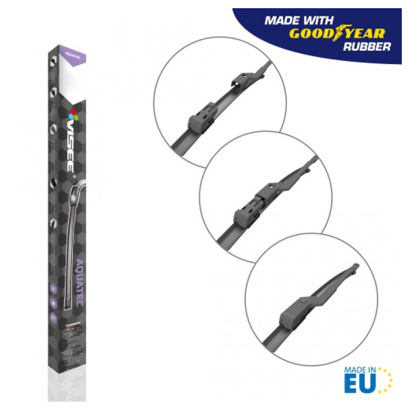 Stierače sú vyrobené z vulkanizovanej vysoko kvalitnej prírodnej gumy, obohatenej o aditíva, ktoré prispievajú k výnimočnej odolnosti voči UV žiareniu, striedaniu teplôt a tiež treniu. Vynikajúca trvanlivosť vďaka svojim nožom z kaučukových zmesí AQUATEC. Moderný dizajn stieračov prispieva k množstvu požadovaných vlastností ako napríklad nízka hlučnosť pri stieraní, vysoká aerodynamická efektívnosť pri vysokých rýchlostiach, stieranie po celej dĺžke stierača resp. okna.