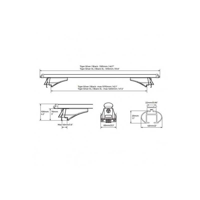 Menabo Tiger Silver 120 cm je kvalitný strešný nosič určený pre Seat Alhambra (7N) 2015-> s pozdĺžnymi lyžinami. Lyžiny môžu byť zapustené v aute alebo vyvýšené nad autom. Jeho robustná hliníková konštrukcia, jednoduchá montáž a bezpečnostné prvky ho robia ideálnym riešením na prepravu batožiny, športového vybavenia alebo strešných boxov.