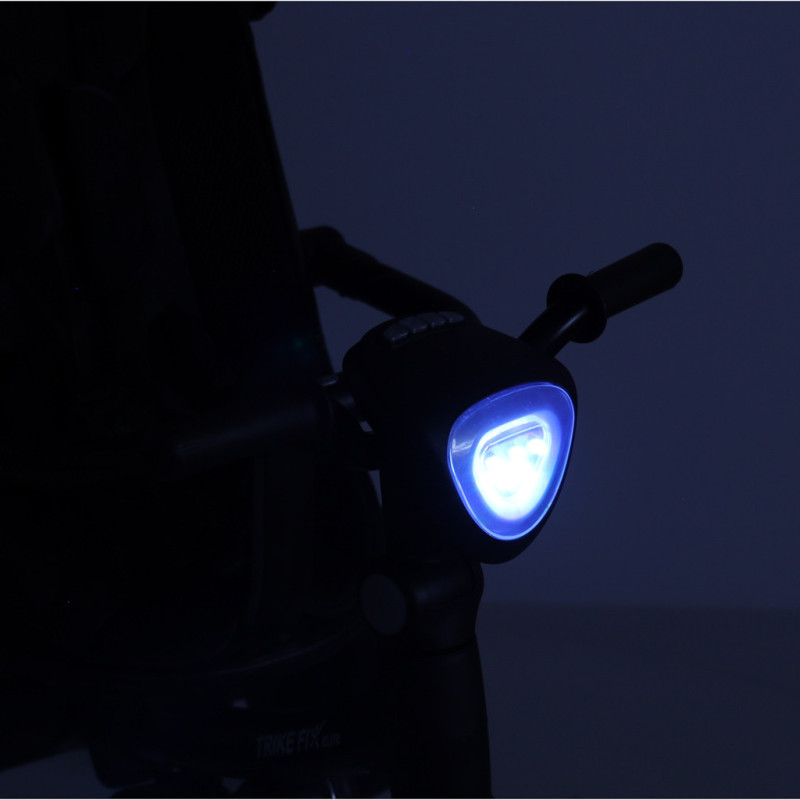 Trojkolka je vybavená svetlom na riadidlách (napájanie 3× AA batérie – nie sú súčasťou balenia) a reproduktorom s 4 melódiami (bez možnosti regulácie hlasitosti). Bezpečnostná hrazda a pásy zaisťujú ochranu počas jazdy, zatiaľ čo nastaviteľný sklon sedadla (od vzpriamenej po poloľah) zvyšuje komfort. Sklopná strieška chráni pred slnkom, výklopné opierky nôh neprekážajú pri jazde a veľký odkladací priestor je ideálny na hračky alebo osobné veci.