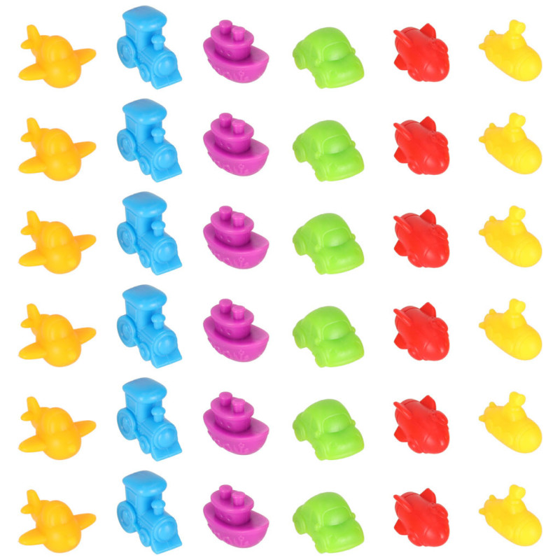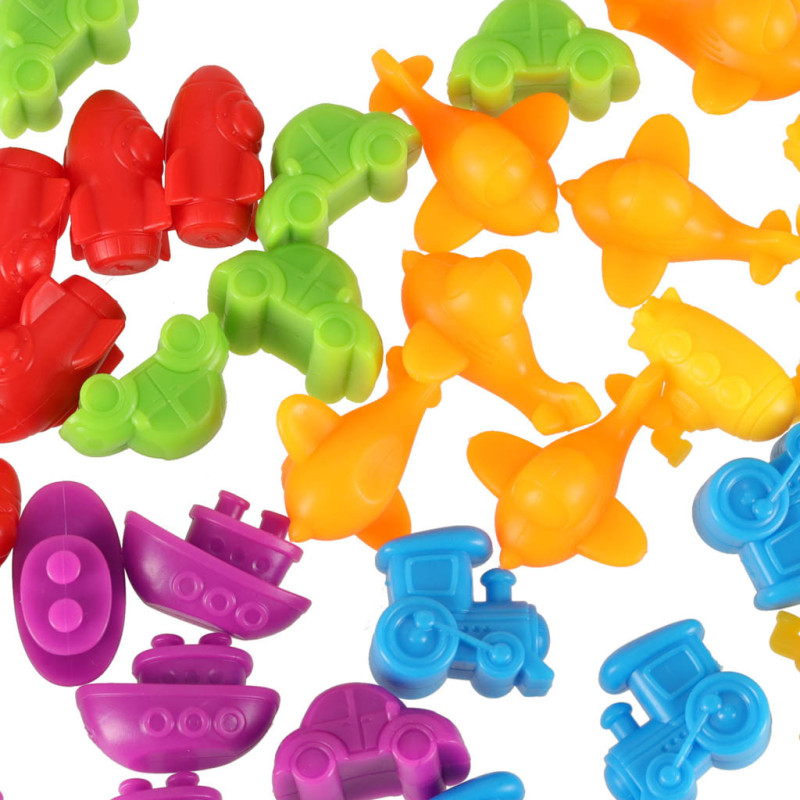 Tridsaťšesť pestrofarebných vozidiel je skvelým spôsobom, ako spojiť zábavu s učením! Sada obsahuje autíčka, vrtuľníky, ponorky, lokomotívy, rakety a lode.